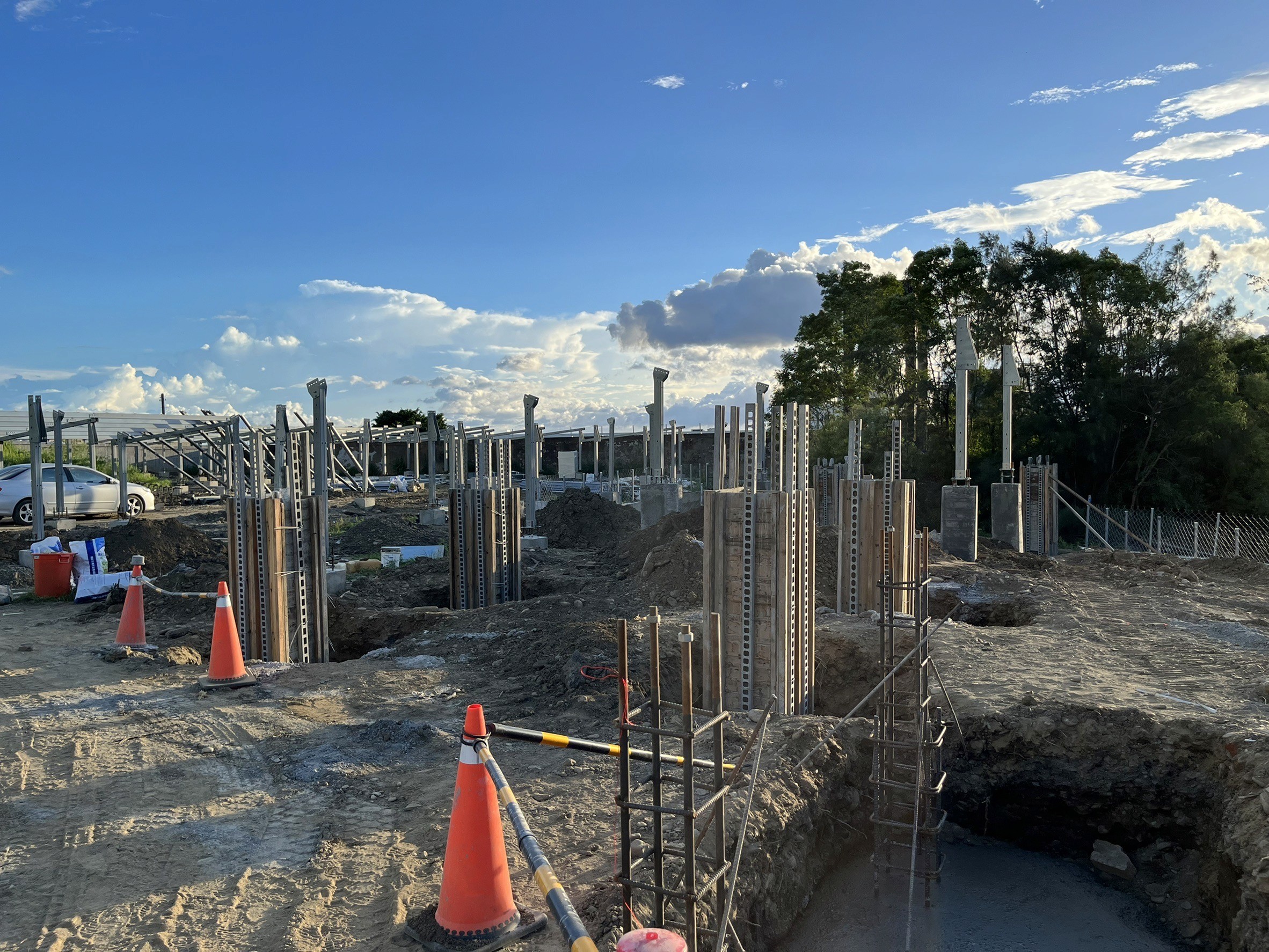 測量定位:依設計圖勘查地形,標示各基礎位置。挖掘作業:按設計需求挖掘基礎孔洞或槽體。座體建置:根據型式進行鋼筋綁紮、混凝土灌漿或鋼構安裝。回填整地:待混凝土硬化後,回填埋設基礎周圍空隙,整平地面。