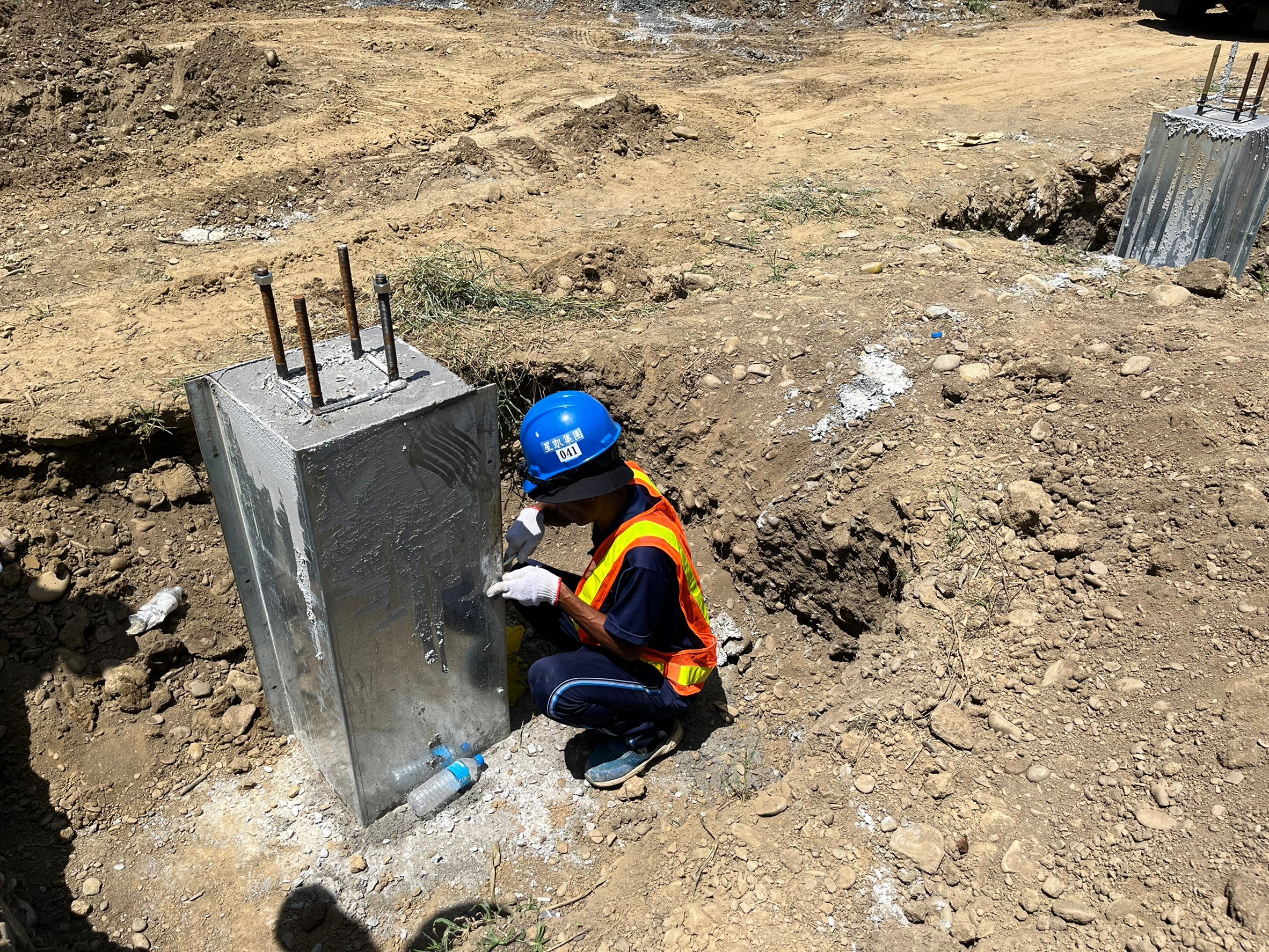 基礎座施工需確保位置、尺寸與水平度的精確性,使上方支架能完全貼合,達到系統穩固運作的目的。施工過程中也包含埋設深度測量、混凝土強度檢測及植筋拉拔試驗等品質確認作業,確保整體結構安全無虞。